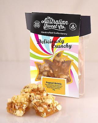 The chewiness of popcorn contrasts with roasted Australian peanuts.